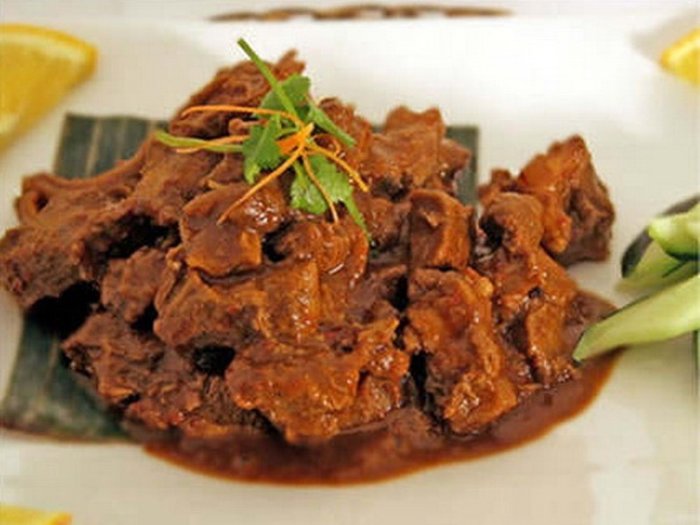 Это очень популярное блюдо индонезийской кухни. Оно готовится из говядины тушеной в очень остром или пряном соусе, состоящем из кокосового молока, имбиря, куркумы и различных специй и приправ.